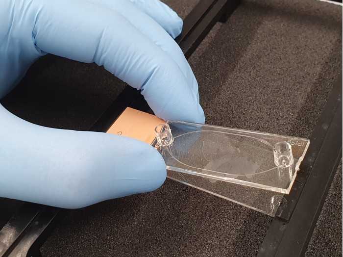 Sticky-Slide Tissue組織切片通道載玻片提供了一個簡單、便捷的工作流程,可在載玻片安裝的組織切片上創建一個節省空間的通道。在對組織進行脫石蠟處理和再水化后,取下襯底并將粘性載玻片放在顯微載玻片上,即可為組織切片創建一個方便的染色室。